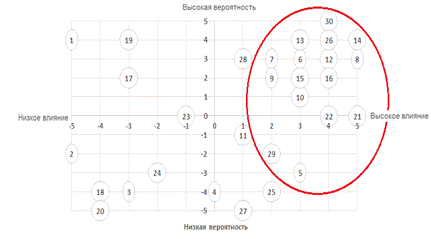 степень влияния внешних факторов на бизнес по шкале [-5;5] (рис. 14):