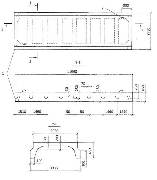 напрягаемой стержневой или канатной арматурой, поперечные ребра и полки -