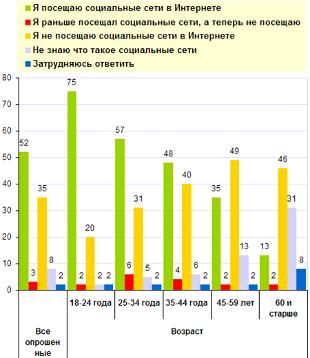 не более 2% опрошенных. «Вконтакте» выбирают, в первую очередь, 18-24-летние