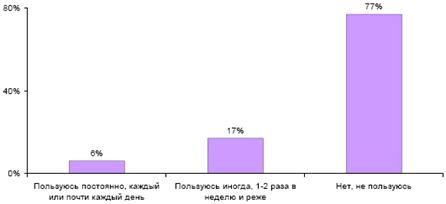 пользуются вовсе, иногда (1-2 раза в неделю и реже) - 17%, постоянно «висят» в
