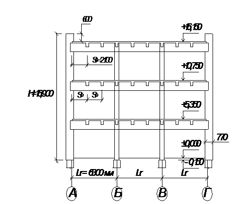 координационным осям an = 150 мм, продольных стен ar = 100 мм. Высота наружных