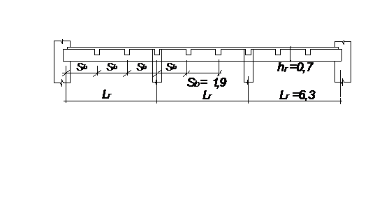Расстояние между осями ребер второстепенных балок (шаг) Sb = 6300 / 3 =2100 мм