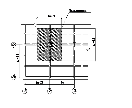 поперечными координационными осями Ln = 6300 мм, 5000<6300<7000 мм.