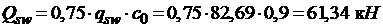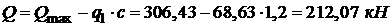 поперечная сила, воспринимаемая бетоном в наклонном сечении;