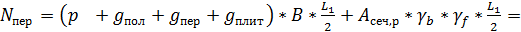 - Перегородки -собств. вес пола (керамогранит 15мм) - собств. вес плиты