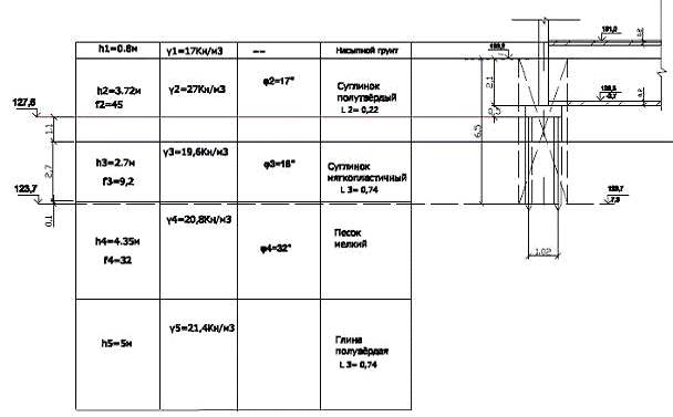 инженерно-геологического разреза, а также о нагрузке и глубине котлована.