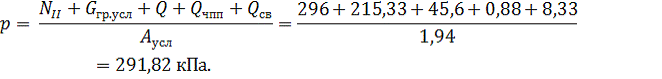 Расчетная нагрузка от сооружения N1 = 355,2 кН/м без учета собственного веса ростверка и стены
