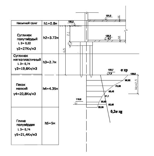 Рисунок 4. Расчетная схема для определения осадки свайного фундамента