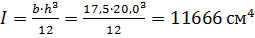 Момент сопротивления и момент инерции расчетной полосы настила: