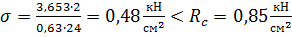 расчетное сопротивление древесины сжатию вдоль волокон (8,5 МПа=0,85 кН/см2);