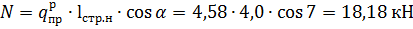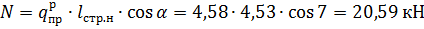 Погонная нагрузка на стропильную ногу по скату в вертикальной плоскости: qpверт=4,58*1,5=6,87 Кн