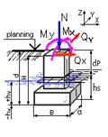 Расчетные моменты в уровне подошвы фундамента: Mx= 54,32 кН*м, My= 11,39