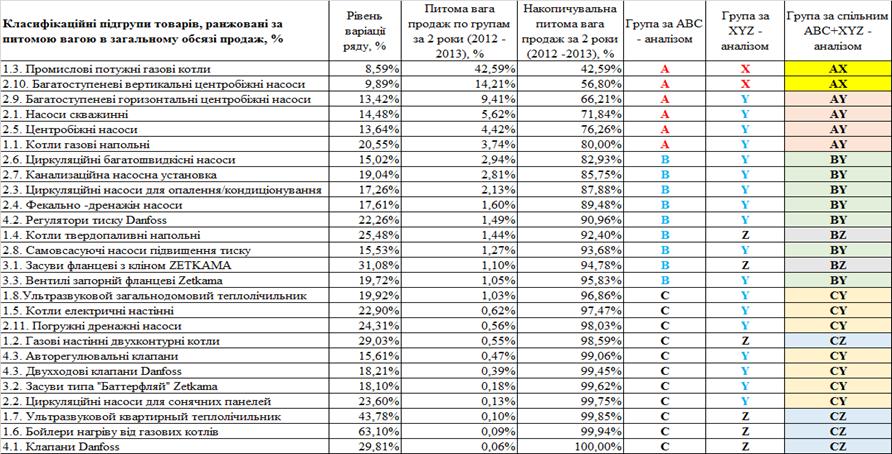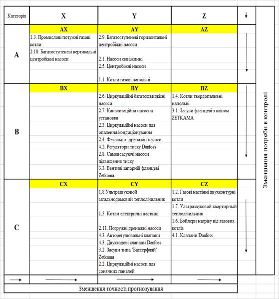 -системи» на базі інтегрованого ABC+XYZ-аналізу, а також надання рекомендацій
