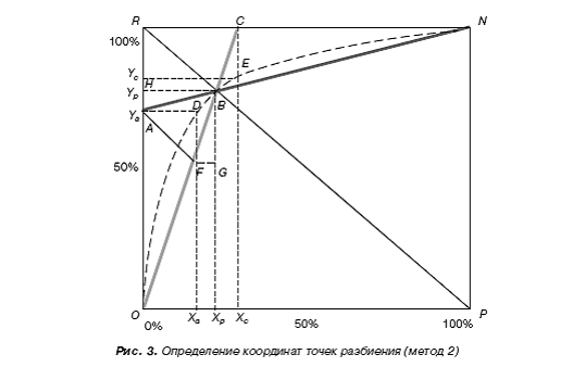 точкам. По горизонтальной оси абсцисс откладывается процентная доля количества