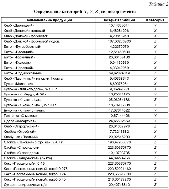 хот-дога», хлебец «Отрубной» - продукция, относящаяся к категории X (значение коэффициента