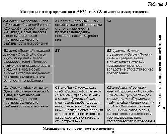 интегрированного АВС- и XYZ-анализа товарооборота предприятия (табл. 3).