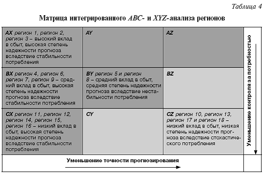 интегрированный ABC-XYZ-анализ клиентской базы (регионов) предприятия. Целью