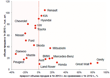 результатам первого полугодия 2013 года продажи легковых автомобилей в России