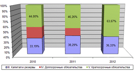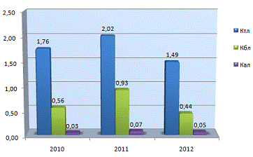 коэффициент текущей ликвидности в 2010 и 2012гг. выше единицы, но меньше двух,