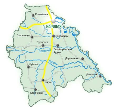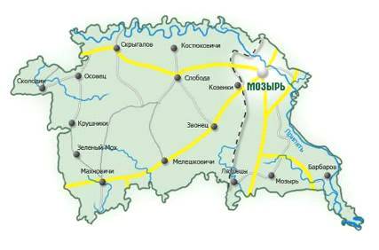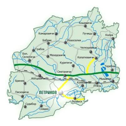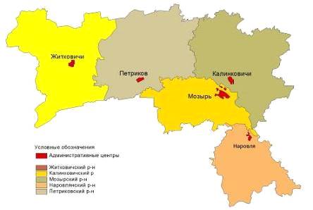 Мозырский, Калинковичский, Житковичский, Петриковский и Наровлянский районы.