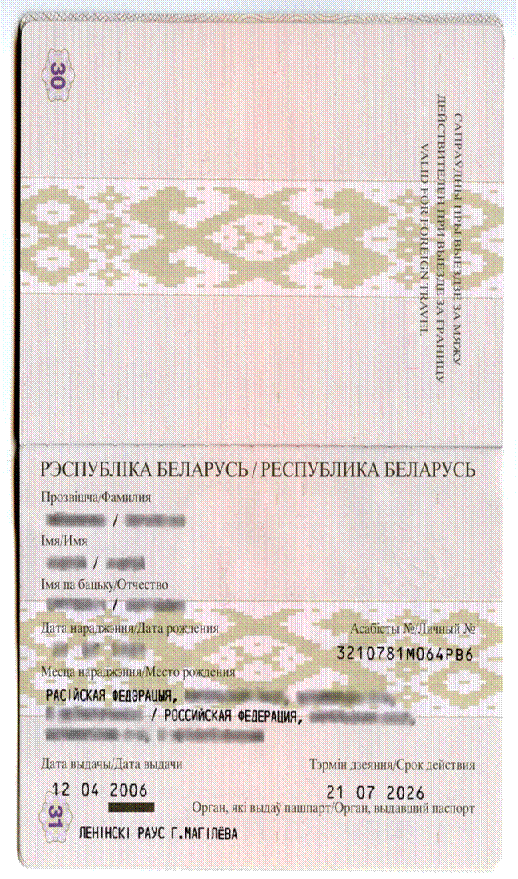 паспорт серии HB2886867 № 4001294Н123РВ4,