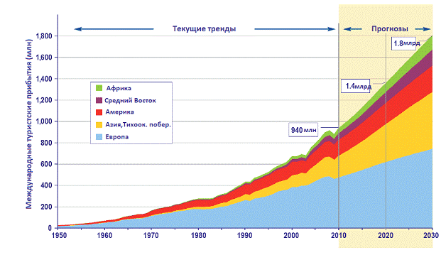 Рис. 1. Туристские прогнозы ВТО до 2030: текущие