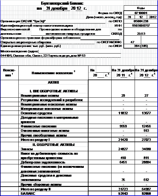 структуры бухгалтерского баланса ОАО ИК «ТриЭф» за 2012 г.