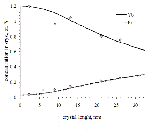 монокристаллов CBFB и YCOB, активированных эрбием и иттербием с эрбием.