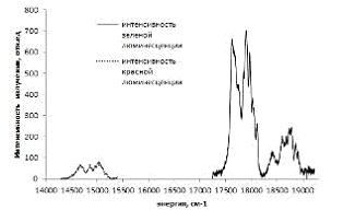спектральных областях. Определено, что интенсивность излучения зеленой области