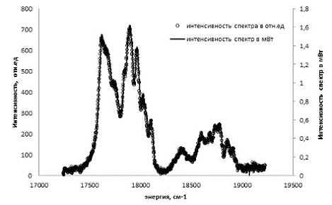 ап-конверсионного излучения необходимо было получить спектр в абсолютных