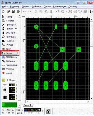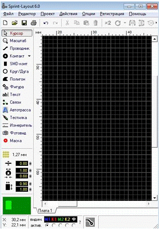 двосторонню друковану плату розмірів 90х85 з координатною сіткою 2, 5 мм.