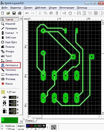 автоматичного проектування PCAD, за допомогою якої було здійснено трасування