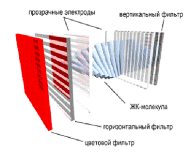 прозрачно. Упрощённую конструкцию жидкокристаллического индикатора можно увидеть
