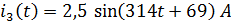 представлены мгновенные значения некоторых величин электрической цепи, что даёт