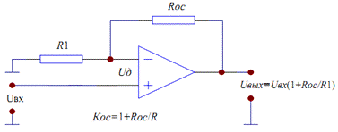 Рис. 3. Неинвертирующий усилитель
