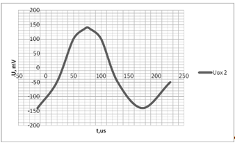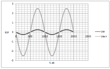 т.е. выходящий сигнал усилился и поменял полярность на противоположную от