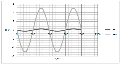 названиях. На осциллограмме, в случае, неинвертирующего усилителя наблюдается