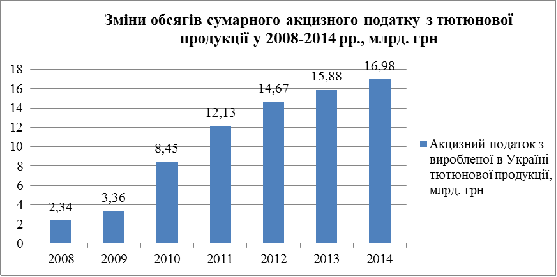 України, впродовж 2008-2014 рр. Отож, сумарний акцизний податок з тютюнової