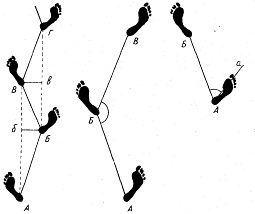 шага, АБВ - угол левого шага, БАа - угол разворота стопы.