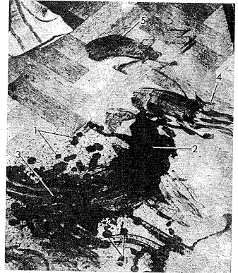 Видны фестончатые края и мелкоточечное разбрызгивание вокруг; 5 - отпечаток
