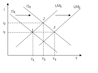 связана с изменением предложения денег, сдвиги кривой LM