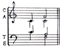 движении вниз по звукам мажорного трезвучия с так называемым «зависанием»