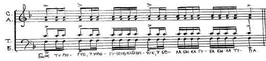 певцов хора. Оно построено на гаммообразном движении вверх и последующем