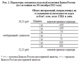 бивалютной корзины, состоящей из 0,45 евро и 0,55 доллара. Диапазон допустимой