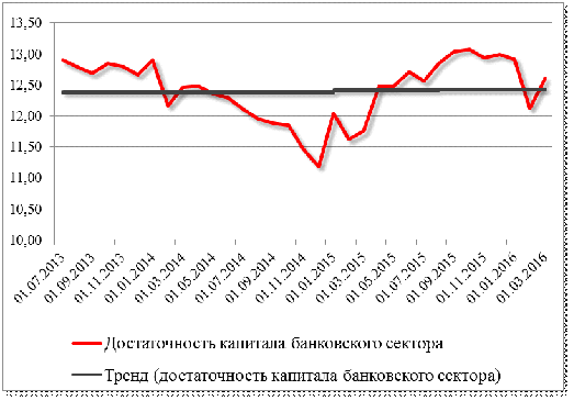 достаточности капитала достигло минимума на указанном интервале времени. Это