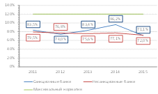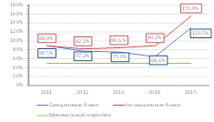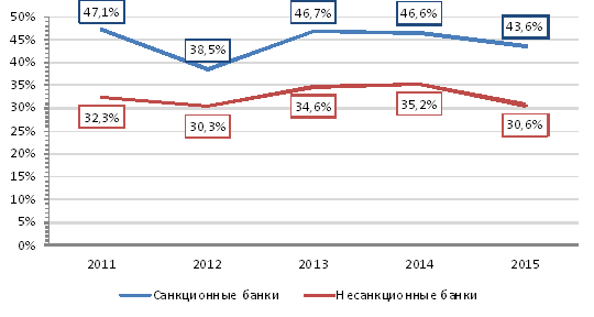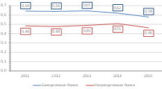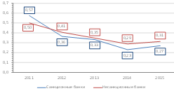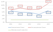 совокупных активах банковского сектора в 2014 г. составил 53,6%, а в 2015 г. -