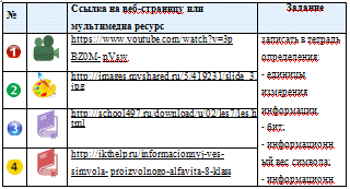 Интернет-ресурсов при изучении содержательной линии «Информация и