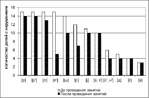 в развитии звукопроизношения у детей с общим недоразвитием речи, свидетельствующую