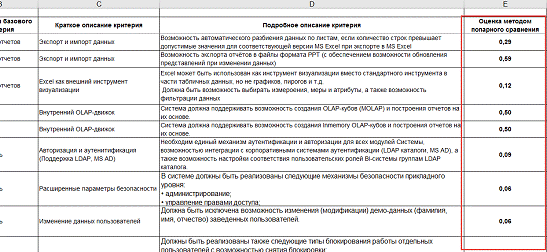 каждого из критериев в столбец «Оценка методом попарного сравнения» Абсурдная
