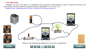 электрического тока (Рис. 8.1 - 8.2). Модель позволяет собрать цепь, с помощью